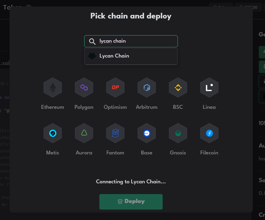 * Once your smart contracts are ready, use Cookbook’s deployment tools to deploy them on the Lycan Chain.